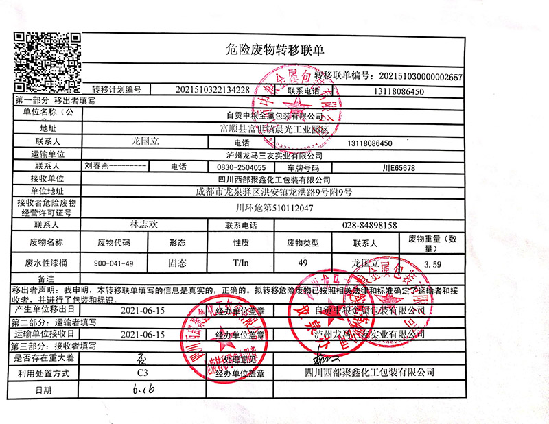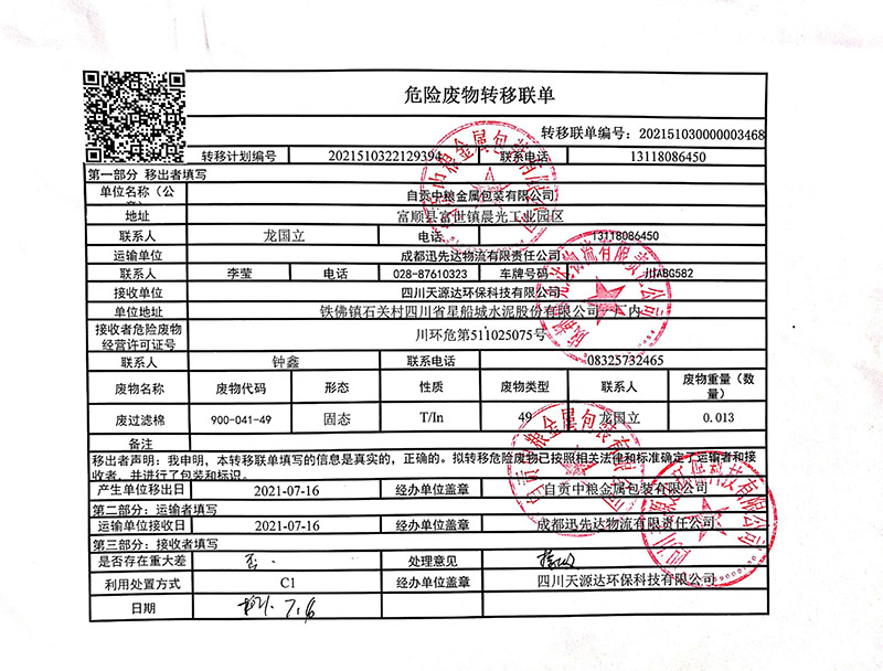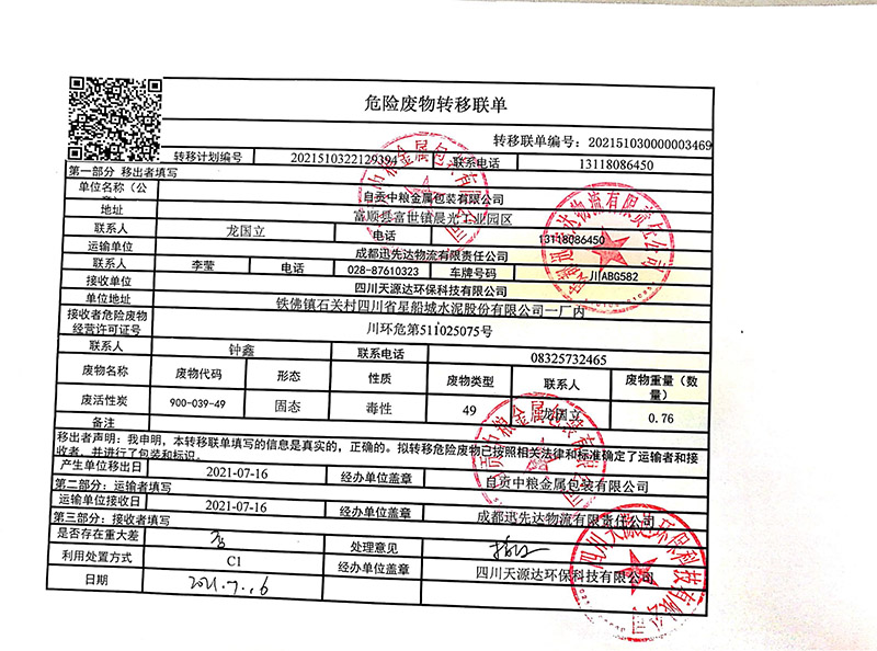 危險(xiǎn)廢物轉(zhuǎn)移聯(lián)單